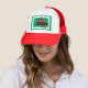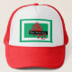 A Red and White Trucker Hat to personalise, with a cute little red dragon holding a place to add your name or a slogan.