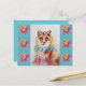 Cute Red Fox Animal Teal Rose Roses Postcard