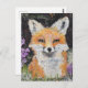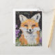 Cute Red Fox Purple Flowers Mixed Media Postcard