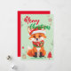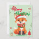 Cute red fox santa Christmas Holiday Family name Card