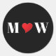 Cute red heart custom couple initials monogram modern typography Classic Round Stickers.