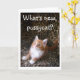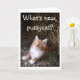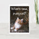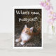 Cute red kitten on leopard print greeting card