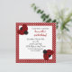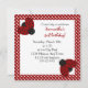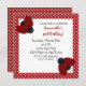 If your little one loves ladybugs, then these invitations are perfect for telling her friends about her party! Two, sweet red ladybugs with black spots on their wings are in the upper and lower corners. The border is red with white polka dots, and the centre is white so your message can be seen!