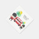 Cute and fun Red London Bus Themed birthday party napkins featuring a red london bus with a banner with personalised name.
