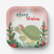 Cute Red Merry Christmas turtle Santa Xmas party Paper Plate