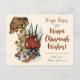 Spread joy and laughter this holiday season with these cute and funny mushroom themed Christmas postcards. The design features a hand-painted illustration of a merry mushroom building a snowman outside their red mushroom house. The text reads, "Hugs, kisses and warm Chrismush wishes!" Create your own one-of-a-kind holiday cards by adding your own name or family name