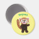 This happy, cute red panda is enjoying a bamboo snack. Drawn in adorable cuddly cartoon style.