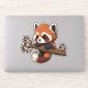 This sticker features an adorable red panda, perched on a tree branch with its eyes open and alert. The furry mammal is depicted with a curious expression, as if observing its surroundings with interest. The red panda's reddish-brown fur is rendered with intricate details, conveying its fluffy texture and the distinct white markings on its face and tail. The tree branch is also illustrated with a realistic texture, creating a sense of depth and dimension. This sticker is perfect for nature lovers and animal enthusiasts who appreciate the beauty of wildlife, and it's sure to add a touch of cuteness and charm to any surface it's applied to.