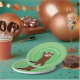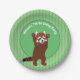 Throw one wild party with these custom paper plates featuring an illustration of a red panda standing on his hind legs, a green background with bamboo stripes accents at the edge and white lettering spelling out your own custom message. These personalised paper plates are perfect for parties for animal lovers.