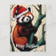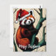 A cute red panda with a Santa Hat on the tree branch postcard.