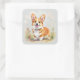 Cute Red Pembroke Welsh Corgi Dog Square Sticker