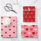 Cute Red Pink White Hearts Patterns Wrapping Paper Sheet