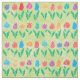 Spring is in the air with this cute floral fabric featuring whimsical tulips decorated with fun patterns including polka dots, stripes and swirls, in shades of red, turquoise, orange and purple on a green background.