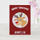 Cute Red Reindeer Kid`s Name Merry Christmas Card