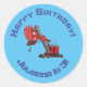 Cute red steam shovel digger cartoon illustration classic round sticker