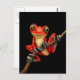 This adorable design features a small red tree frog holding on to a thin branch. The tiny frog is looking forward with it's head tilted slightly to one side giving it a curious look. All four of the frog's feet are wrapped around a thin branch that moves from the bottom of the design up to the right side of the pattern. This unique design is a cute example of this wonderful little rain forest creature.