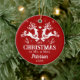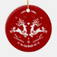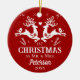 Cute Red White First Christmas Deer in Love Ceramic Ornament