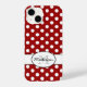 Personalise retro trendy girly iPhone case with your initial and name. Adorable Cool retro pattern with White dots and dark red background.