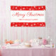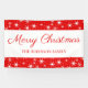 This Merry Christmas design has a red and white snowflake pattern, with red font, and family name text for you to change.