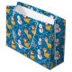 Cute Reindeer and Snowman Blue Large Gift Bag