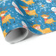 Cute Reindeer and Snowman Blue Wrapping Paper