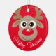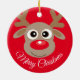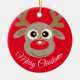 Cute Reindeer Cartoon Christmas Red Ceramic Ornament