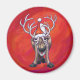 Cute Reindeer Christmas On Red Magnet