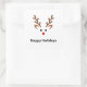 Cute Reindeer Face with Red Nose Name Square Sticker