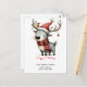 Cute reindeer wearing a Santa hat on a postcard. Text can be changed. AI assisted graphic purchased with commercial use. Artwork: RedHeronLighthouse