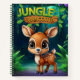Personalise the back cover of this adorable "Jungle Welcome" notebook! Featuring a unique whimsical wild baby Reindeer cartoon graphic tropical Fawn animal character in a lush nighttime forest scene, inviting you into a world of imagination and creativity. This Doe design is perfect for woodland safari lovers, nature wildlife fans, and anyone who enjoys cute Deer and cosy zoo vibes.