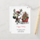 Cute reindeer wearing a Santa hat pulling a sleigh filled with gifts on a postcard. Text can be changed. AI assisted graphic purchased with commercial use. Artwork: RedHeronLighthouse