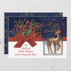 Cute Reindeer Red Bow Blue& White Holiday Card