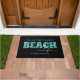Welcome your guests with this customisable 1970s retro-style door mat. The mat features a striking black background that beautifully contrasts with the whimsical ‘Beach’ text. This text, rendered in pastel shades of aqua blue, pink, and yellow, is not just a word but a canvas for adorable beach-themed images. The images of cute palm trees, hibiscus flowers, seashells, a beach chair, and a beach umbrella are artistically incorporated into the ‘Beach’ text itself, creating a delightful visual treat.