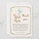 Cute retro Teddy Bear with balloons baby Boy shower thank you card.
