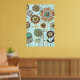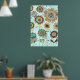 Cute retro blue, brown floral pattern custom poster print design, featuring a lovely pattern of abstract flowers in brown, beige, tan, turquoise on pale blue background. A feminine, girly, floral design with a vintage feel to it.