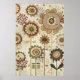 Cute retro brown, beige floral pattern custom poster print design, featuring a lovely pattern of abstract flowers in brown, beige, tan and olive green. A feminine, girly, floral design with a vintage feel to it.