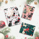 Merry Christmas with these cute cats that are celebrating the holiday with you. The three sheets are each a bit different, but all from retro pattern illustrations. One is all fun black cats with red and adornments, such as ornaments and holly berries on a white background.