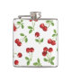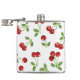 Nostalgic design featuring ripe red graphic cherries and green leaves against a white background.