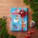 Cute retro colourful ornaments Christmas blue Wrapping Paper