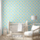 This cute retro daisy pattern teal blue and white flowers peel and stick wallpaper is perfect for a baby nursery or an accent wall in a kid's bedroom. Use it in a bedroom or a playroom to bring a whimsical feel to any kids' room space.