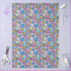Cute retro doodle hearts and flowers love blue pink and yellow pattern boho style modern artistic design.