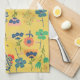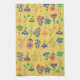 Cute retro floral pattern mustard Pink Green Tea Towel