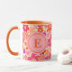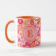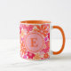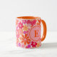 Cute Retro Floral Pattern Orange Pink Monogram Mug