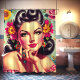 Cute Retro Floral Pin-up Portrait Shower Curtain