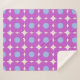 This stylish sherpa blanket features a fun retro flower pattern in purple and blue.