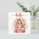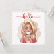 Cute retro girl hello card with blank back for personal message.