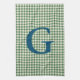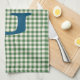 Cute Retro Green Gingham Plaid Pattern Monogram Kitchen Towel