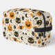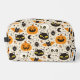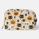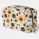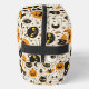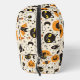 This design presents a cute and whimsical Halloween pattern filled with a delightful assortment of classic spooky icons. The background is a light cream colour, providing a soft contrast to the bold designs. The pattern includes playful jack-o'-lanterns with different expressions, black cats with bright yellow eyes, smiling skulls, and friendly bats with orange wings. Scattered throughout are spiders, crescent moons, stars, mushrooms, and magical symbols, all adding to the enchanting Halloween atmosphere. The colour palette features striking blacks, oranges, and yellows, creating a lively and festive design perfect for Halloween decorations, clothing, or party themes. The overall feel is fun and charming, ideal for celebrating the spooky season with a touch of sweetness.