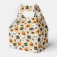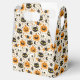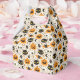 This design presents a cute and whimsical Halloween pattern filled with a delightful assortment of classic spooky icons. The background is a light cream colour, providing a soft contrast to the bold designs. The pattern includes playful jack-o'-lanterns with different expressions, black cats with bright yellow eyes, smiling skulls, and friendly bats with orange wings. Scattered throughout are spiders, crescent moons, stars, mushrooms, and magical symbols, all adding to the enchanting Halloween atmosphere. The colour palette features striking blacks, oranges, and yellows, creating a lively and festive design perfect for Halloween decorations, clothing, or party themes. The overall feel is fun and charming, ideal for celebrating the spooky season with a touch of sweetness.