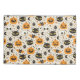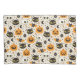 This design presents a cute and whimsical Halloween pattern filled with a delightful assortment of classic spooky icons. The background is a light cream colour, providing a soft contrast to the bold designs. The pattern includes playful jack-o'-lanterns with different expressions, black cats with bright yellow eyes, smiling skulls, and friendly bats with orange wings. Scattered throughout are spiders, crescent moons, stars, mushrooms, and magical symbols, all adding to the enchanting Halloween atmosphere. The colour palette features striking blacks, oranges, and yellows, creating a lively and festive design perfect for Halloween decorations, clothing, or party themes. The overall feel is fun and charming, ideal for celebrating the spooky season with a touch of sweetness.